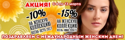Официальный магазин Норд Винд поздравляет всех российских женщин с весенним праздником 8 марта, желает им красоты, любви, здоровья и процветания. Свои поздравления интернет-магазин российского производителя подкрепляет праздничной акцией, которая начинается шестого марта. Во вторую мартовскую неделю мужчины смогут купить в подарок любимой женщине элегантное зимнее пальто или теплую куртку со снижением цен в 15%. Десятипроцентная скидка предусмотрена для актуальной коллекции «Сезон весна 2017».