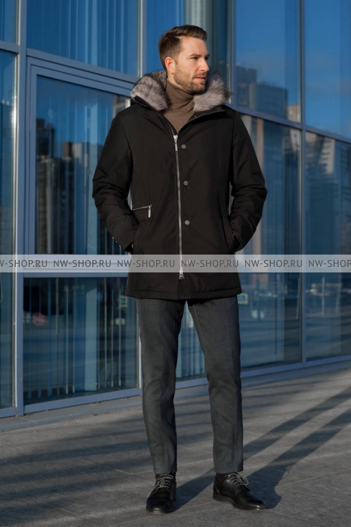 Стильная мужская куртка прямого фасона со смещенной молнией. Пышный отстегивающийся меховой воротник Blue Frost, отстегивающийся капюшон. Декоративные кнопки вдоль застежки и на манжетах. Удобные боковые карманы. Мембранная ткань с водоотталкивающим покрытием, флисовая подкладка, практичные внутренние карманы, эластичные манжеты в рукаве.